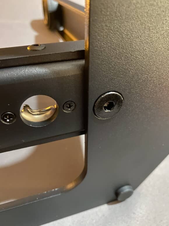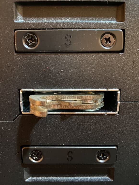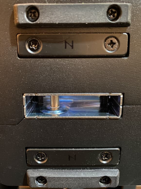 Nichtsdestotrotz müssen die Geräte mit Hilfe der integrierten und patentierten C-Lok-Verschlüsse, deren Verriegelungs-Prinzip aus der Welt der LED-Video-Wände stammt und ohne Werkzeug erfolgt, ordnungsgemäß mechanisch miteinander verbunden und über eine der beiden vorhandenen Ösen gegen Herabfallen gesichert werden.