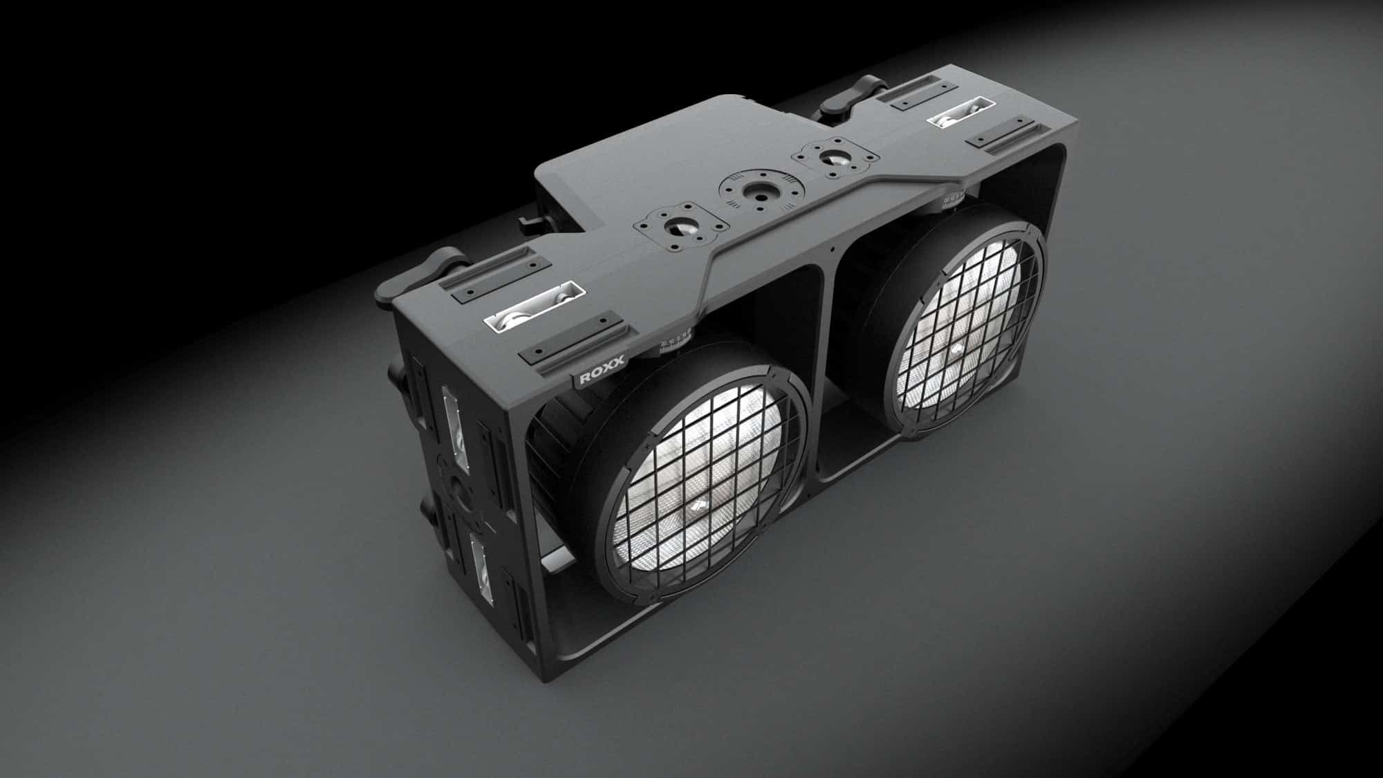 Beide Modelle sind mit einem eigens konzipierten LED-Modul, welches auf der Lumileds Luxeon Plattform erstellt wurde, ausgestattet. Die LED-Module haben eine Leistung von jeweils 300 Watt. Bei der weißen Produktausführung befinden sich drei farbige Dioden (Warmweiß, Amber und Rot) auf der Trägerplatine, während bei der Full-Color-Variante gleich fünf Farben (Rot, Grün, Blau, Amber und Warmweiß) mit an Bord sind. Dies ermöglicht bei Letzterer nicht nur eine sehr feine Farbmischung, sondern bietet gleichzeitig modifizierbare Weißtöne von 2.000 bis 10.000 Grad Kelvin, während die Farbtemperatur der weißen Ausführung bei 2.900 Kelvin liegt. Die PWM-Frequenz ist an dieser Stelle zwischen den sechs unterschiedlichen Wiederholraten von 800 Hz, 1.200 Hz, 2.000 Hz, 3.600 Hz, 12 kHz und 15 kHz wählbar. Gegenüber herkömmlichen Audience-Blindern mit DWE-Leuchtmitteln rufen die ROXX Cluster B2 mit insgesamt 650 W/620 W (W/FC) und die ROXX Cluster B4 mit 1.250 W/1.350 W (W/FC) nur gut die Hälfte der Leistung auf, während die weiße Produktausführung laut Hersteller sogar die doppelte Helligkeit erzeugt, und die FC Variante bei einer Farbtemperatur von 2900K 20% heller als der klassiche DWE Blinder sei.