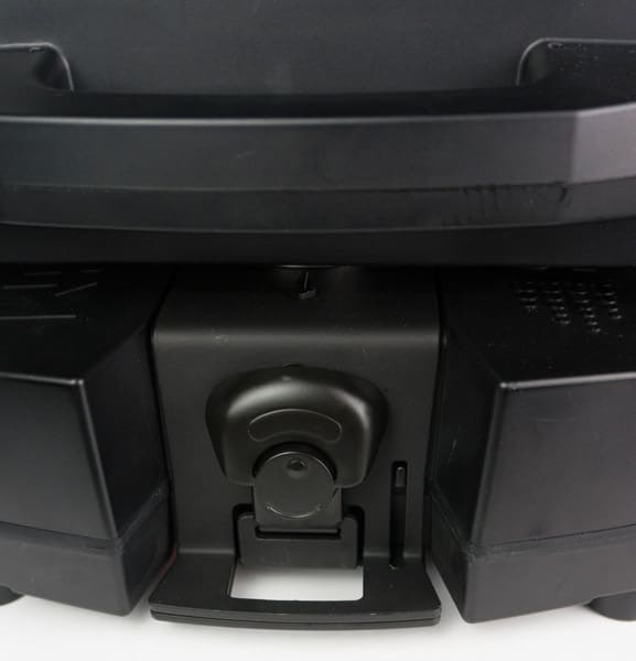 Praxisgerechte Sekundärsicherung da Kopf und Base ohne Werkzeug voneinander zu trennen sind, müssen beide über eine zweite Sicherung verfügen – hier über ein U-förmiges Metallprofil am Kopf, das sich über das Basement legt und mit Teilen der Bodenplatte zur Deckung kommt. Aussparungen erlauben, mit einem Safety gleichzeitig Kopf und Base zu sichern. (Bild: Stefan Junker)