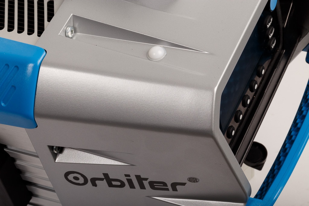 Bei ARRI wird man selten ein Zubehörteil vermissen. Der Orbiter ist von Beginn an nicht nur in den typischen ARRI-Farben „silber-blau“ erhältlich, sondern auch theatertaugliche schwarz. Optionale Kufen zum Anschrauben entlocken dem Lichttechniker beim unachtsamen Schrubben über Kopfsteinpflaster nur ein Schmunzeln. Dome und Softboxen in verschiedenen Größen wie auch passende Grids oder Eyelights gehören neben den Reflektoren-Optiken mit vier- oder achtflügligen Torblenden ebenso zum optionalen Zubehör.