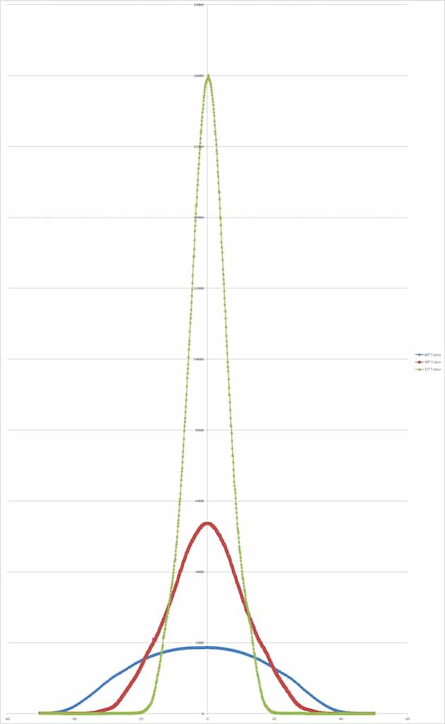 Die Schattenbildung bei der 60°-Optik ist recht hart, was durch den großen Direktlichtanteil der Lichtaustritts-Quelle entsteht, während von 30° zu 15° die Schattenbilddung immer weicher wird, da hier der Reflektoreinfluss immer größer und damit die abstrahlende Fläche vom Scheinwerfer größer wird. Dies ist bei den Bildern sehr gut an den Schatten der Hand erkennbar.