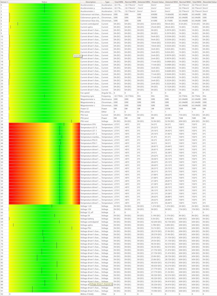 Fernsteuerung via RDM: Fast alle Befehle des Menüs lassen sich auch über RDM aufrufen, hier alleine die Sensorausgabe (Bild: Herbert Bernstädt)
