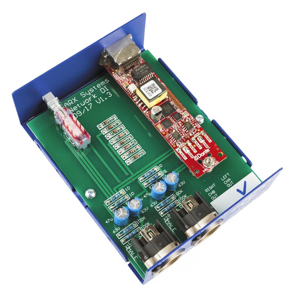 Bei ARX wird man für fast jede Audiointerface-Fragestellung fündig. Für das Network-DI Interface setzt ARX das Audinate-DAO-Board ein und ergänzt dieses mit hauseigener Peripherie.