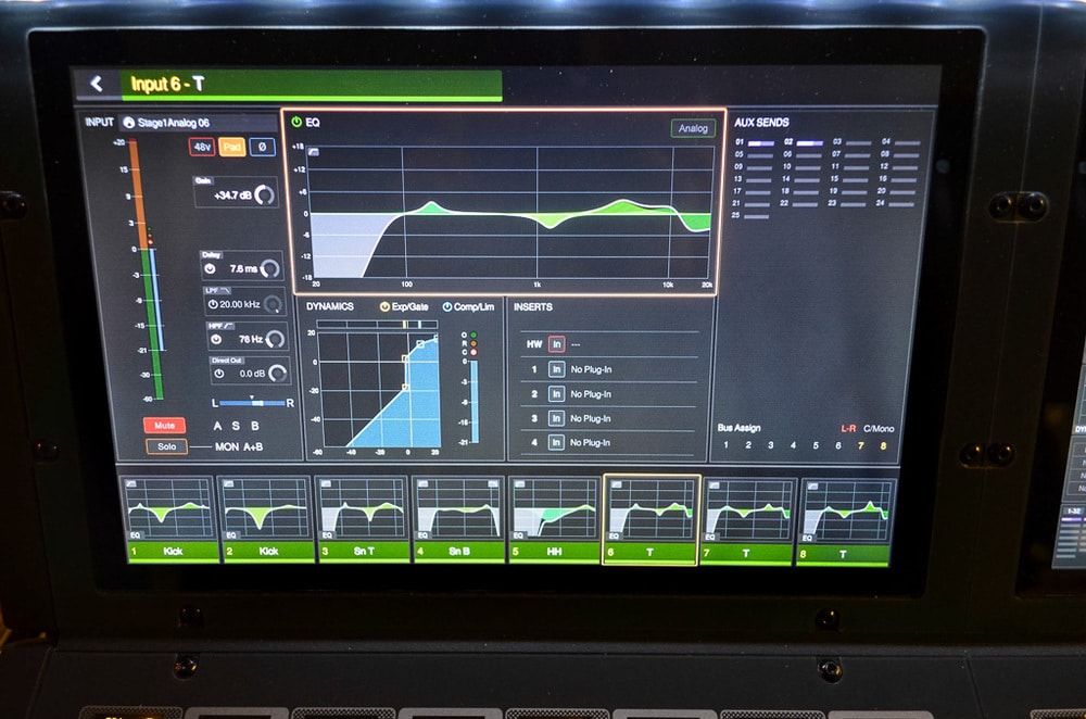 In unserem Test fiel die Entscheidung, die bestehende Venue-Show nicht zu übernehmen und kompromisslos von vorne zu beginnen: Der nötige Aufwand für das Übertragen der Plug-In-Preset sowie die Suche nach Ersatzlösungen erschienen uns gegenüber dem Zeitaufwand für ein Neuanlegen als überbewerteter Perfektionismus; man weiß ja schließlich, was und wohin man will. Der Zeitaufwand einer 1:1 Übertragung auf eine S6L mit externem Plug-In Server wäre im Changeover eines Festivalbetriebs nicht vertretbar – im speziellen Einsatz als „Festivalpult“ stellt es daher aktuell noch keine Alternative zu den älteren Avid-Modellen dar, gerade die Profile hatte sich in einer Art und Weise etabliert, dass nahezu jeder Engineer eigne Files dabei hat, die nahezu ausnahmslos Waves- oder andere third-party Plug-Ins enthalten. (Weitere Tipps zum Übernehmen von Show haben wir hier parat.) Also – einmal neu: