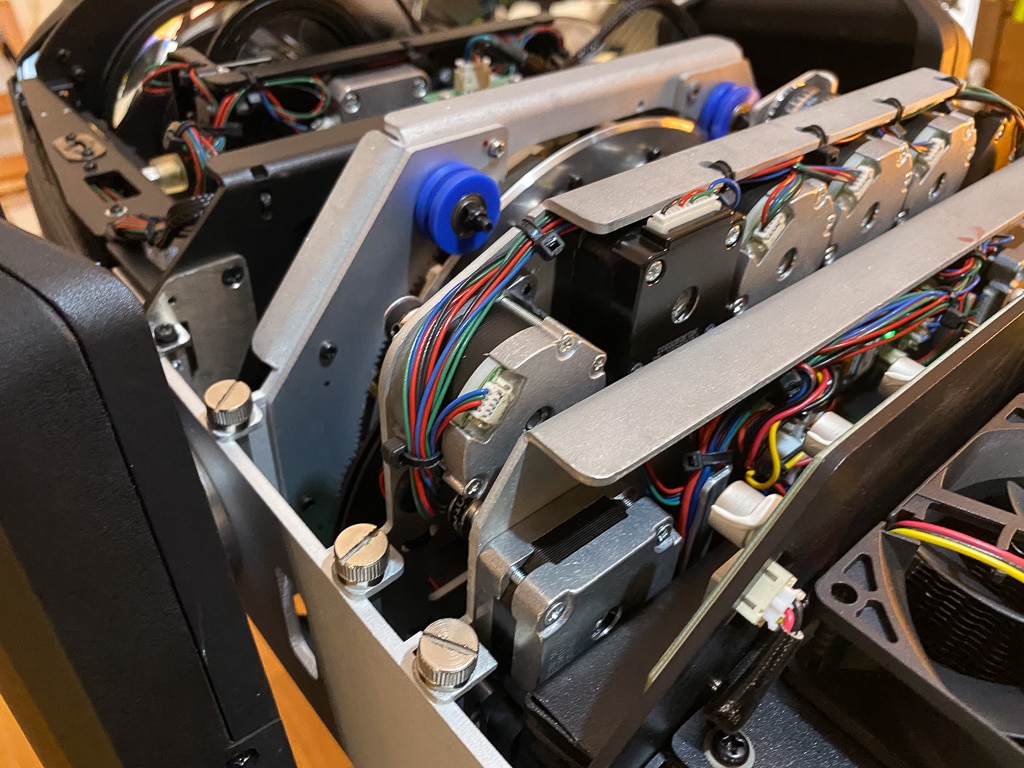 Die beiden Prismen, ein sechsfach Lineares und ein fünffach Zirkulares, sind gegenüber voneinander angeordnet und werden mit zwei voneinander unabhängigen Motoren, aber dennoch über den gleichen Steuerkanal angesprochen. Leider befinden sie sich von der Einbautiefe her wirklich exakt auf der gleichen Ebene und können daher nicht miteinander kombiniert werden.