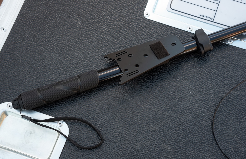 Vom Gewicht her sind Teleskoparm und Mikrofon wirklich federleicht. Hinzu kommt eine per Klett am Stativ befestigte Grundplatte, die wiederum einen Taschensender oder Recorder halten kann. Für die elektrische Verbindung zu Sender/Mischpult/Recorder gibt es verschiedene Anschlussvarianten. Wir haben ganz banal mit dem optional erhältlichen Modell DAD6001-BC von Microdot auf XLR mit Phantomspeisung 48 V gearbeitet, der mit rund 90 Euro zu Buche schlägt.