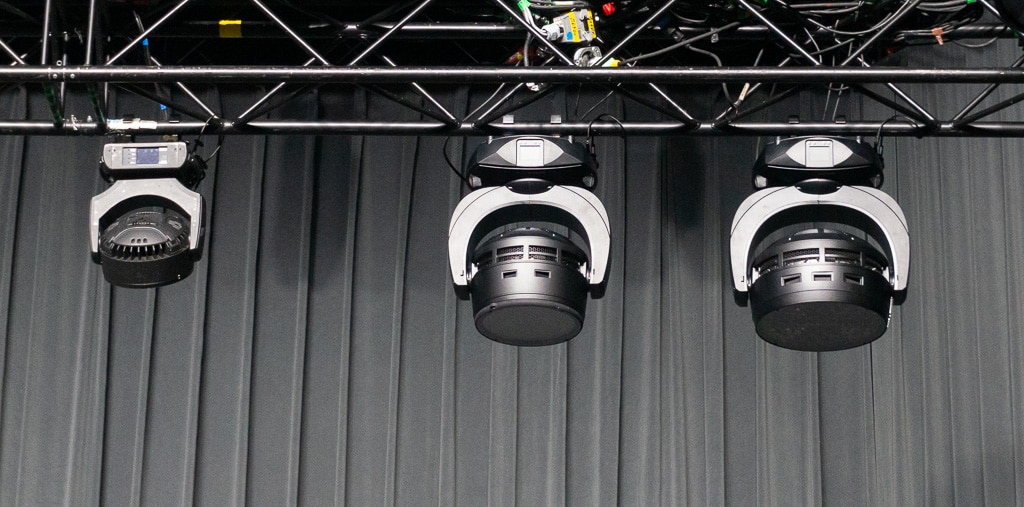 Größenvergleich Robe LedWash 800 (links), Sparx 18 (Mitte) und Sparx 30 (rechts) – zwei „echt große Kübel“, wie ein Audiokollege auf der Baustelle charmant feststellte (Bild: Stefan Junker)