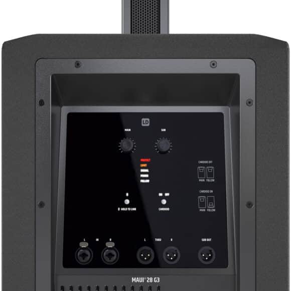 Das 28 G3 verkörpert eine neue Generation der MAUI-Baureihe von LD-Systems. Das voll aktive System verfügt über eine interne Elektronik mit drei leistungsfähigen Endstufen und einem DSP-System, konfiguriert sich automatisch und kommt ohne externe Verkabelung aus.