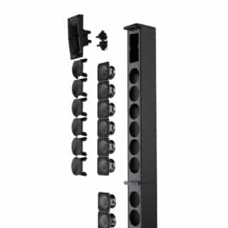 Oben das Waveguide für die Hochtonwiedergabe mit zwei Treibern, darunter sechs kleine Tieftöner mit Phaseplug und die Fortsetzung der Linie im unteren Segment mit Tieftönern ohne Phaseplug (Bild: LD-Systems)