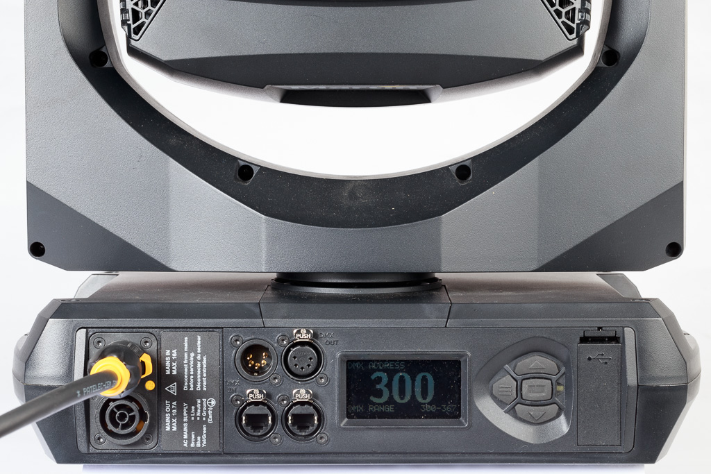 Noch interessanter ist das dort befindliche Batteriefach für den Pufferakku, der die 230-V-lose Menüeinstellung erlaubt. Damit kann man, ohne das Gehäuse zu öffnen, den Akku schnell entnehmen, falls im Touring die Lampe per Luftfracht von Location zu Location versendet wird. Das ist sehr gute Service- und Touring-Unterstützung.