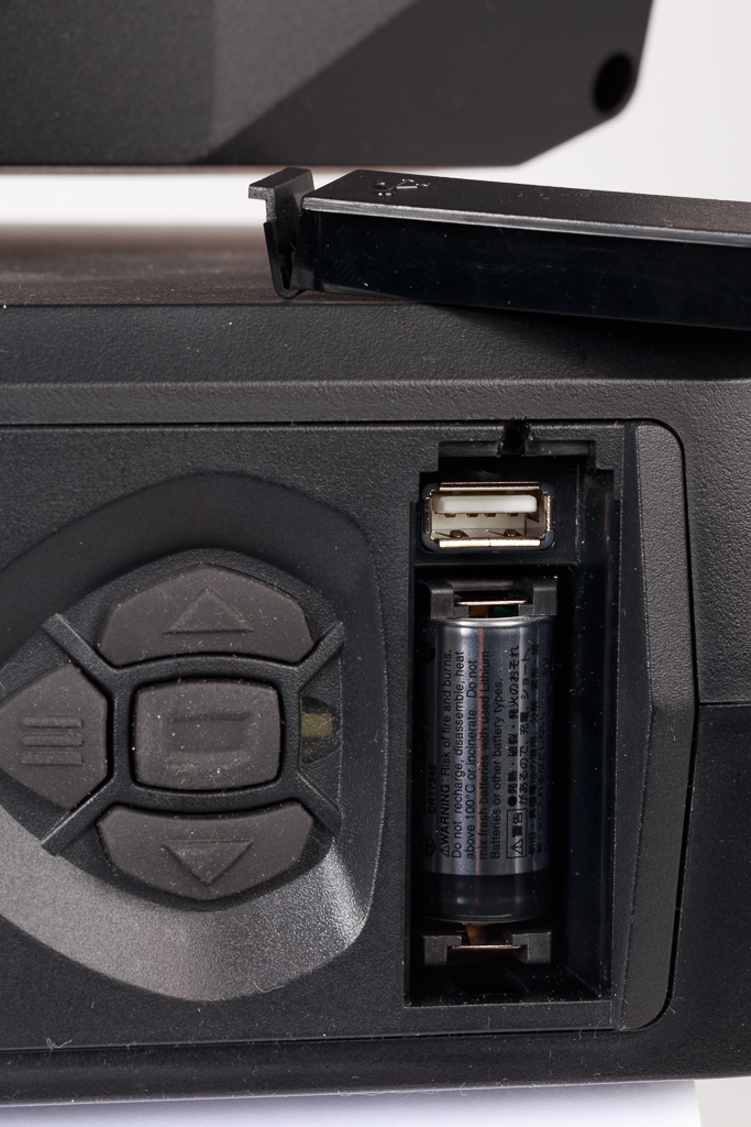 Von außen zugängliche Abdeckung für den Pufferakku des Displays sowie USB-Anschluss für Updates (Bild: Herbert Bernstädt)