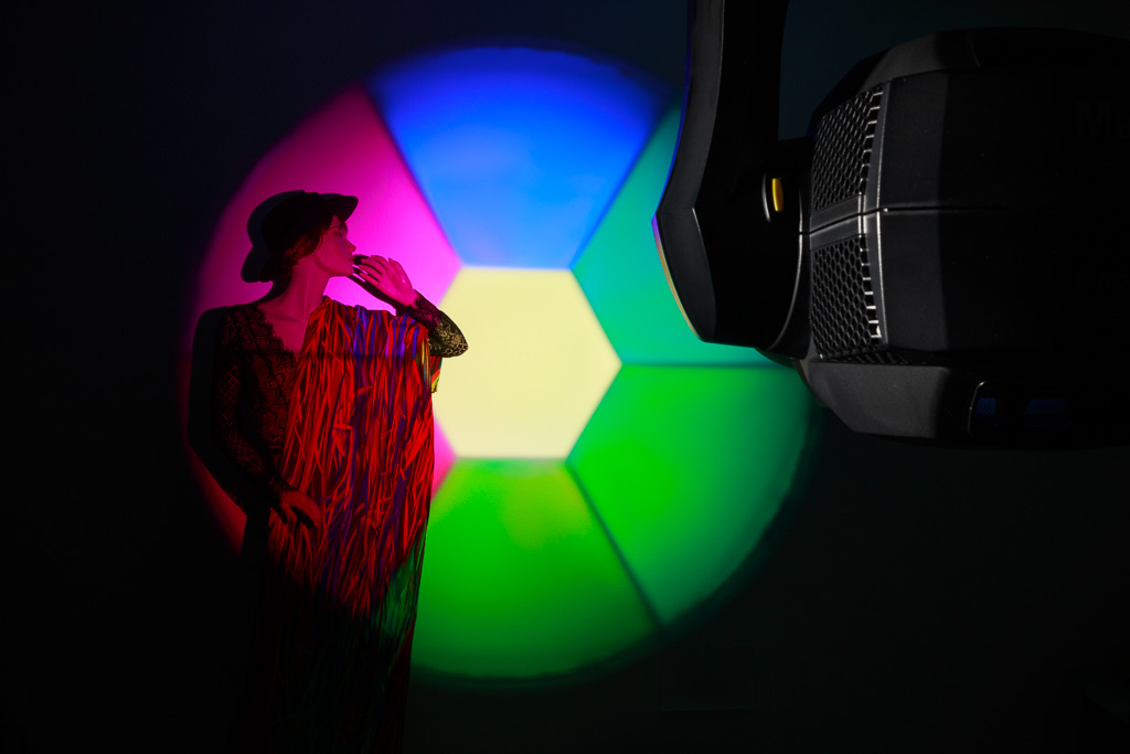 Kurz: Die Lampe hat Spaß gemacht. Schade, dass wir sie „nur“ zum Testen hatten. Sie ist leicht, kompakt und bietet mit ihrer 7-Segment-LED-Engine, auf die man den Fokus scharfstellen kann, auch mit nur einem Goborad und Prisma genügend Abwechslung an. Einzigartig ist dabei, dass die Beams gleichzeitig verschiedene Farben annehmen können. Dass nicht nur „Kirmes“ projiziert werden kann, sondern sich die Lampe auch harmonisch in das übrige Lichtbild einfügt, ist durch die Einzelansteuerung im Extended Mode, wie auch durch die Artnet-basierende P3-Pixelmapping-Anbindung möglich.