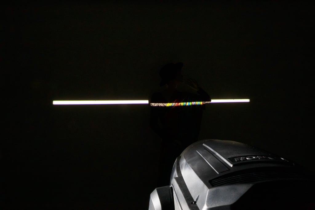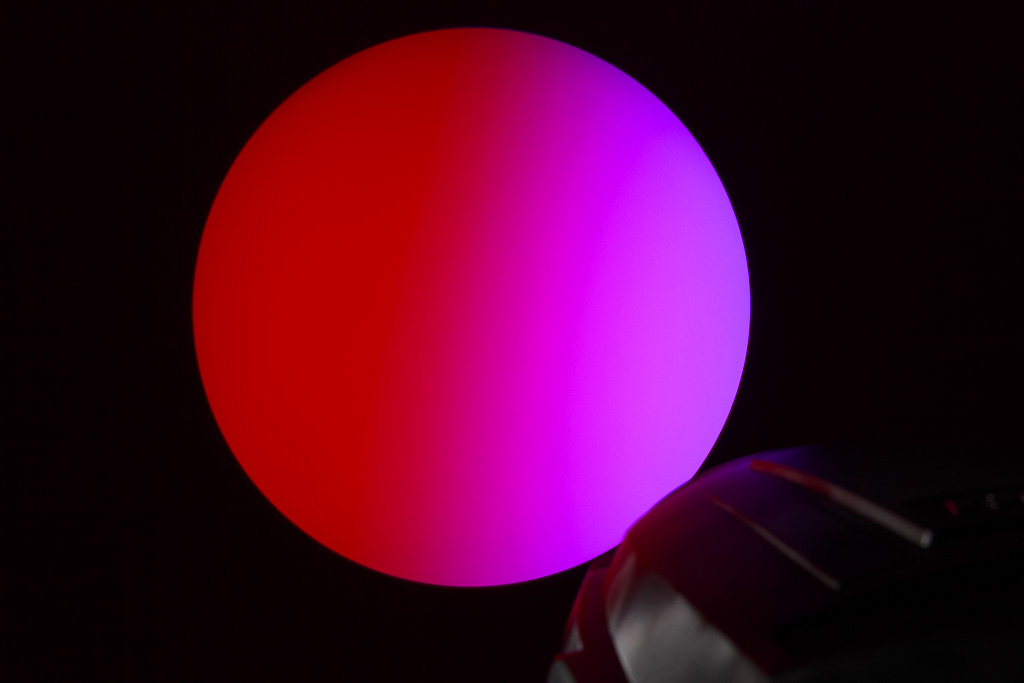 Dennoch ist die Lichtfarbe selbst etwas „dreckiger“, was man in der Projektion an der weißen Wand auch sehen kann. So muss man den High-CRI-Filter mit dem Scheinwerfer gezielt einsetzen, um z. B. die Person zu bestrahlen, während man die Umgebung der Person ohne High-CRI-Filter ausleuchtet. Ein Workaround, den man mit High-CRI-LEDs nicht nötig hätte.