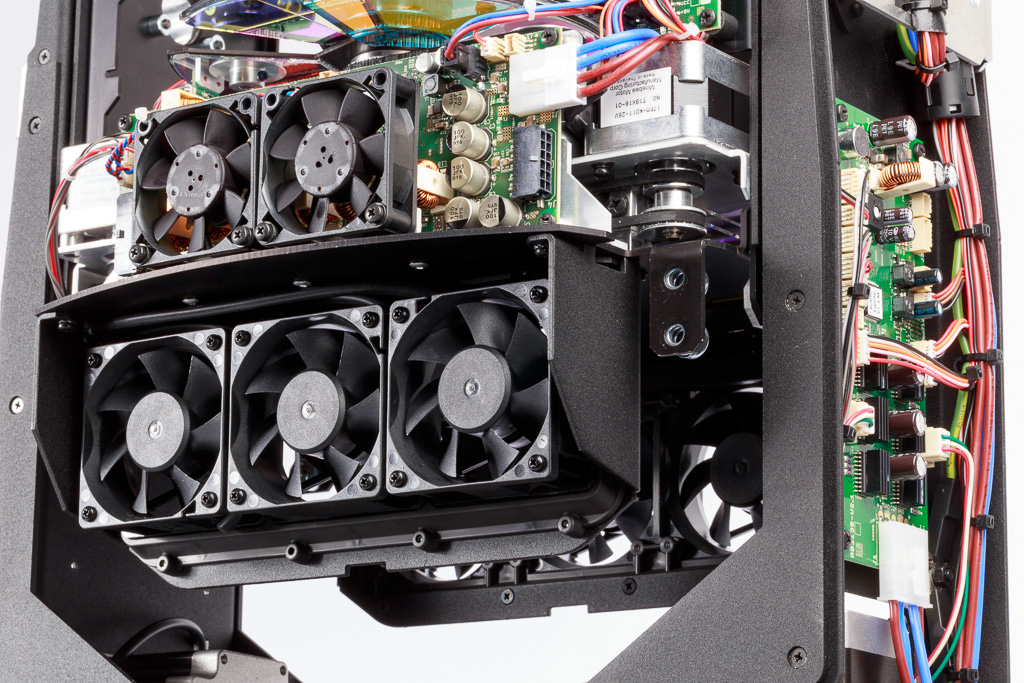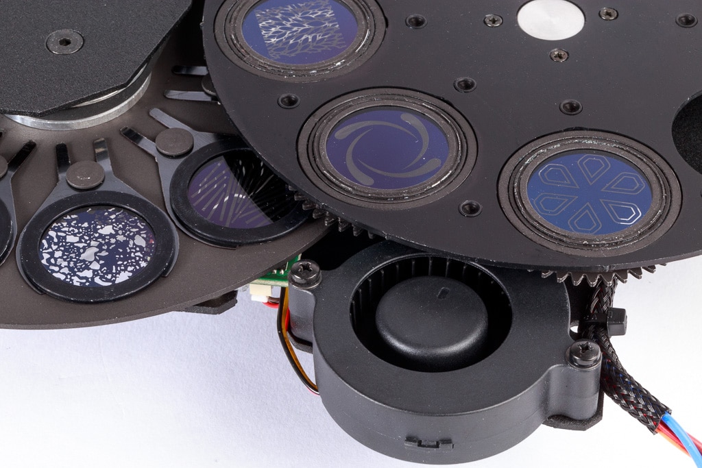 Gobo-Effekteinheit verstärkt die Kühlung der Gobos, die aus temperaturfesten Borosilikatglas sein müssen (Bild: Herbert Bernstädt)