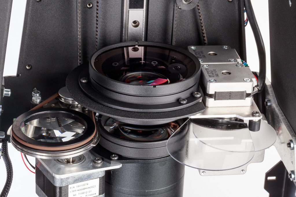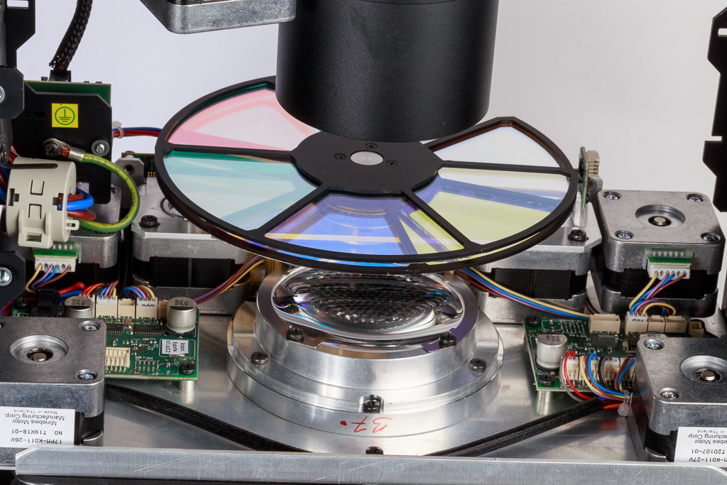 Zweiter Teil der Primäroptik nach dem Kulissensystem sorgt auch für eine Durchmischung der Farben aus dem Kulissensystem, erst danach fügen sich zwei Farbräder hintereinander an (Bild: Herbert Bernstädt)