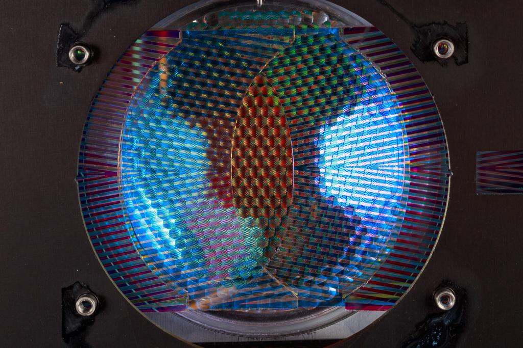 Und zu guter Letzt wurde eine Farbe als Vierfarb-Farbfilter ausgeführt. An sich sind sie ein alter Hut. Aber hier ist auffällig, mit welcher Präzision die vier verschiedenfarbigen Farbfilter aneinandergefügt wurden, sodass kein Weißlicht durch die Stoßkanten hindurchfällt.