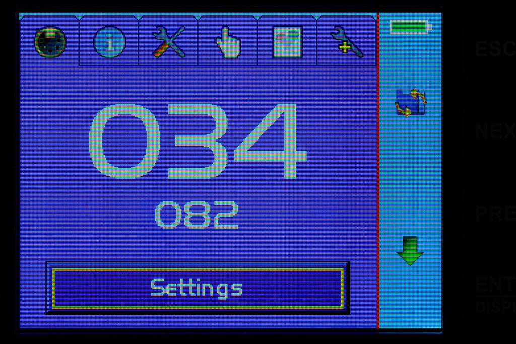 Mittels Farbcode kann man so 5% Helligkeitsverlust der Alterung am Spot sehen. Das Ziel ist ein Angleichen von verschiedenen Esprite-Scheinwerfern, wenn sie z. B. aus mehreren Quellen zusammengemietet wurden oder nachgekauft wurden, um diese alle untereinander anzugleichen.